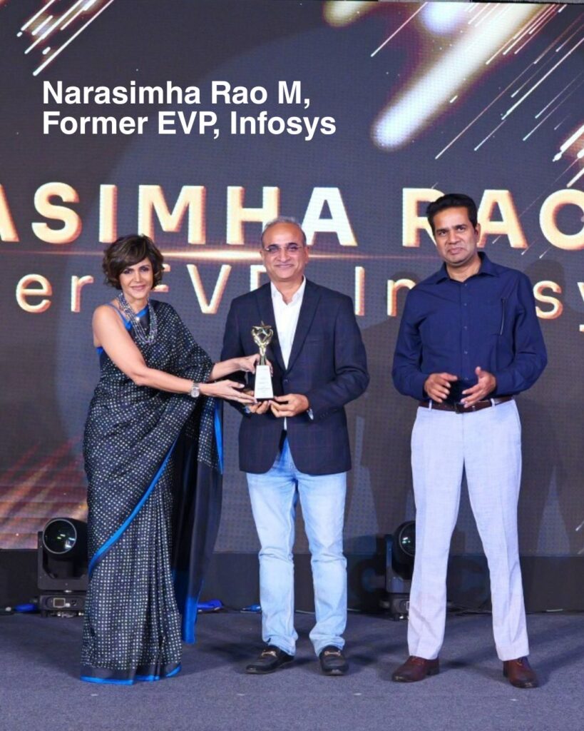An evening of honour and inspiration! We felicitated four industry stalwarts, Narsimha Rao Mannepalli–Infosys, Rajesh Kumar Ojha–PwC, Ranga Pothula –Infor, Shakti Sagar–Intergraph, V Laxmikanth (VLK)–Pavestone VC, #VRajannaRajanna–Tata Consultancy Services for their visionary leadership and lasting contributions to the industry.