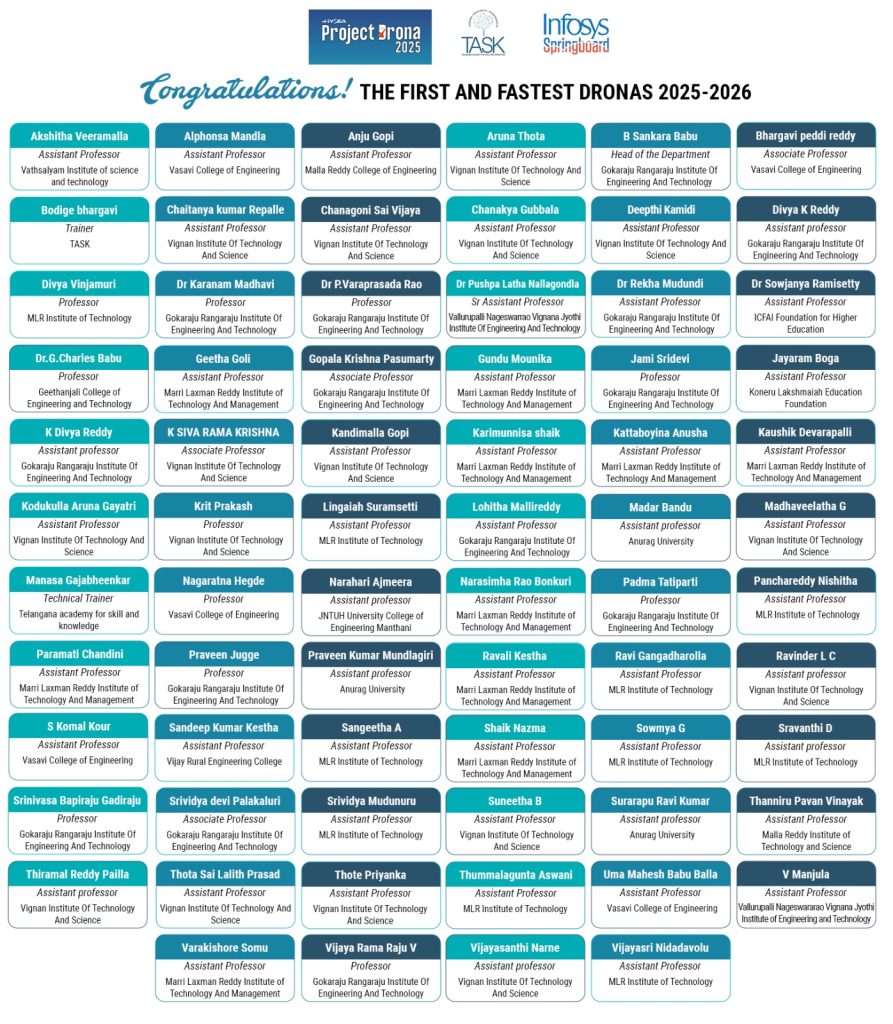 Project Drona 2025 builds on the success of HYSEA’s (Hyderabad Software Enterprises Association) pilot initiative, offering an upgraded and more impactful learning experience for faculty, build on the outcomes and feedback of the previous version. In collaboration with TASK (Telangana Academy for skill and Knowledge) and Infosys springboard, the new version goes beyond foundational training to deliver a comprehensive, industry-aligned, and outcome-driven learning experience for faculty across Telangana.