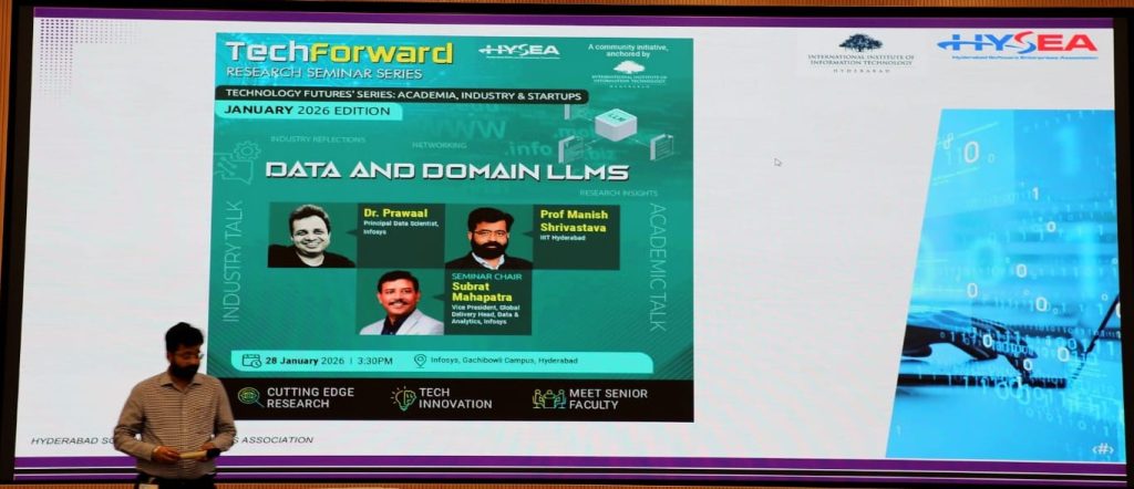 January 28th, 2026: HYSEA and IIIT-H hosted another thought-provoking edition of the TechForward Research Seminar Series focused on Data and Domain LLMs.